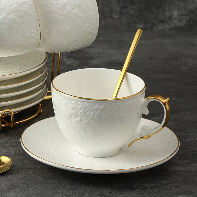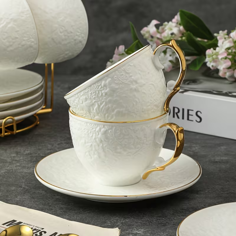The sets work well for coffee, tea, and similar beverages. Cup volume supports different serving styles. Saucers provide space for a spoon or a small dessert.